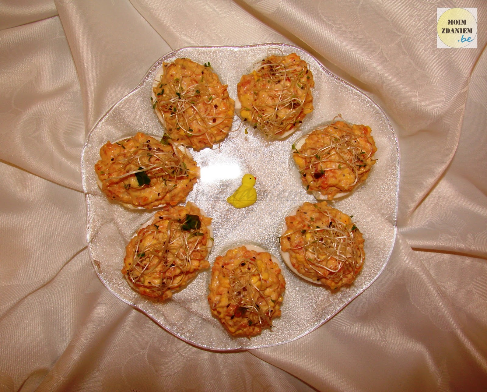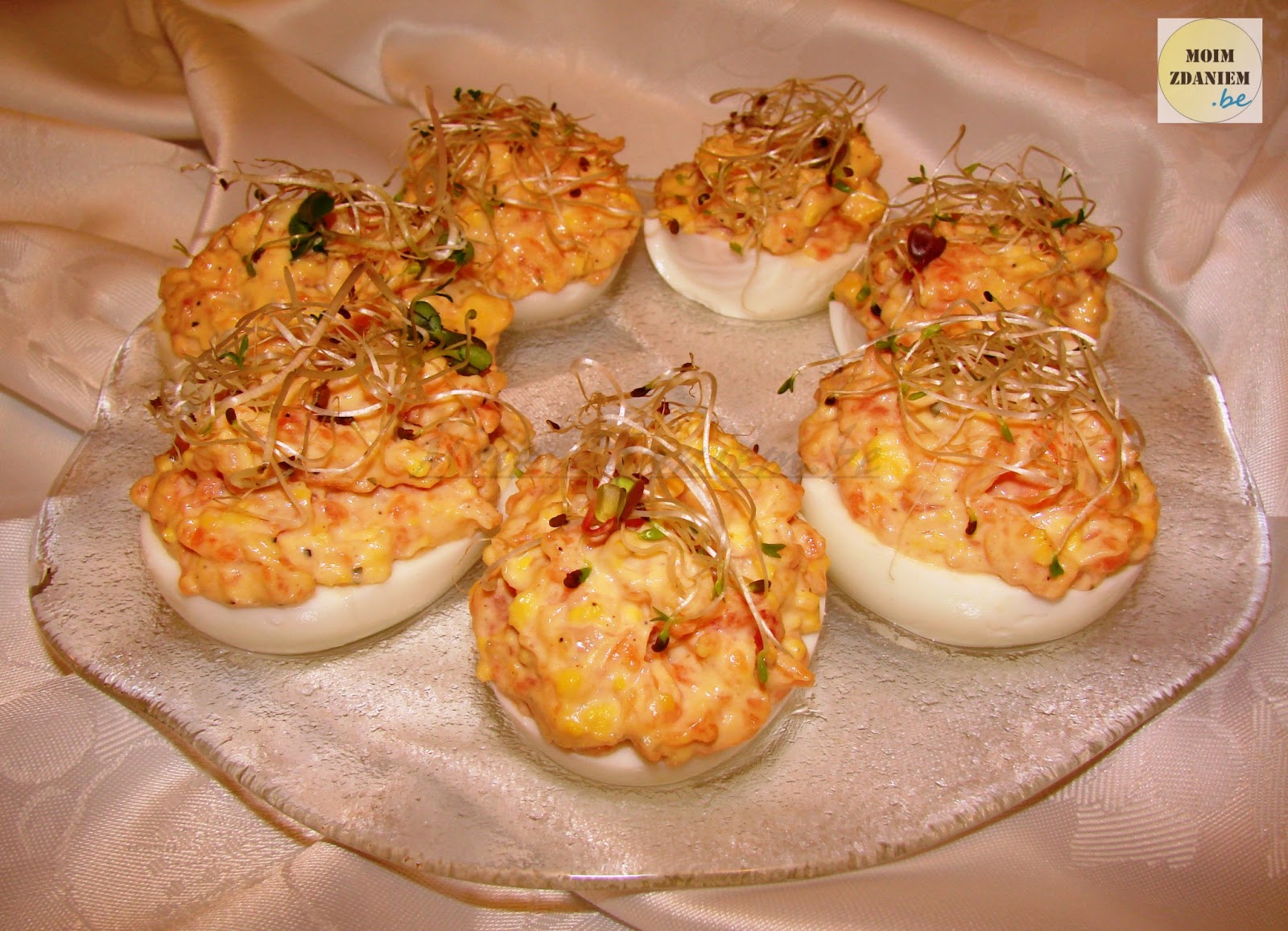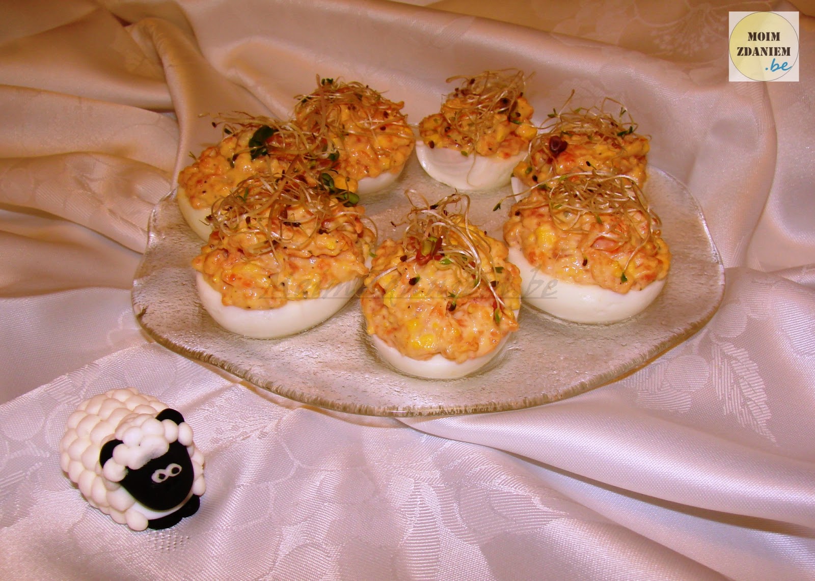 • do wydrążonych białek nakładamy farsz i dekorujemy kiełkami, i gotowe 🙂